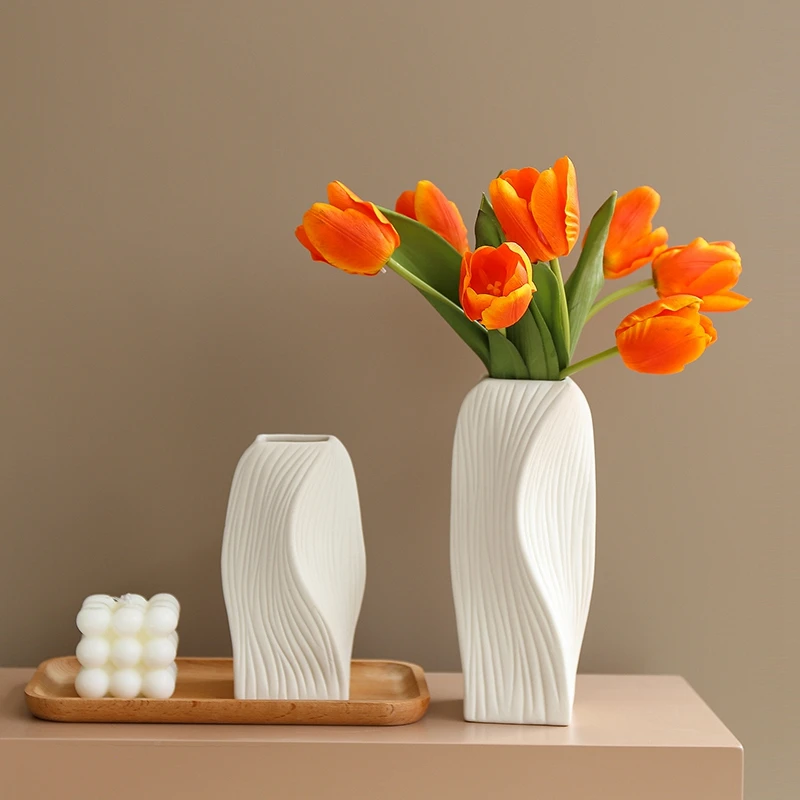 White Plastic Vase Dry Flower Arrangement Vase Hydroponic Bottle Irregular Aesthetic Vases Pots for Living Room Decor Craft